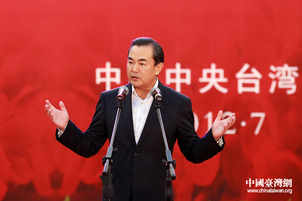 7月29日晚,中共中央台湾工作办公室为第八届两岸经贸文化论坛举行欢送宴会。图为中共中央台办主任王毅在宴会上致辞。(中国台湾网 于斯文 摄)